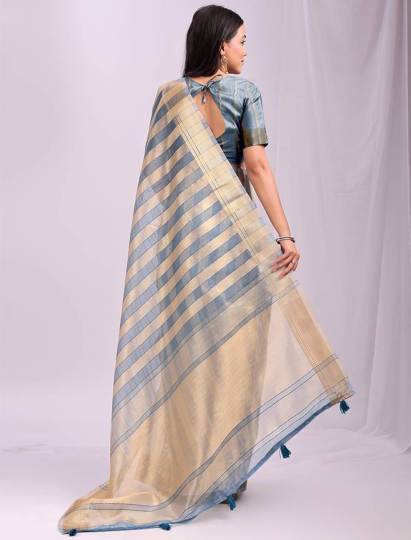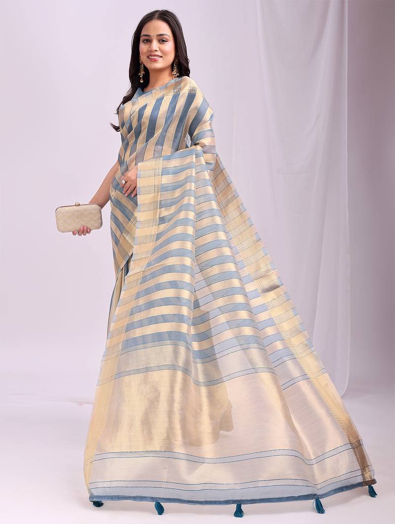 | Product Name | Sky Blue Color Zari Border Work Orgenza Stripe Saree With Blouse | |