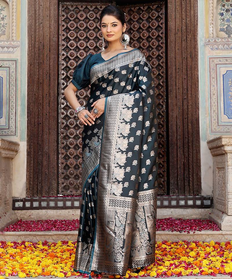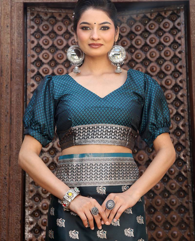 Tarquice color zari woven silk blend saree with un-stitch blouse