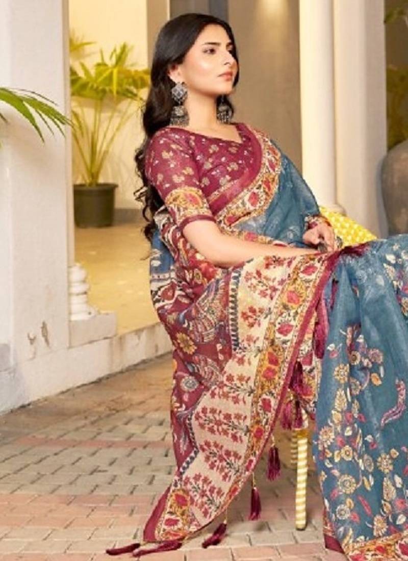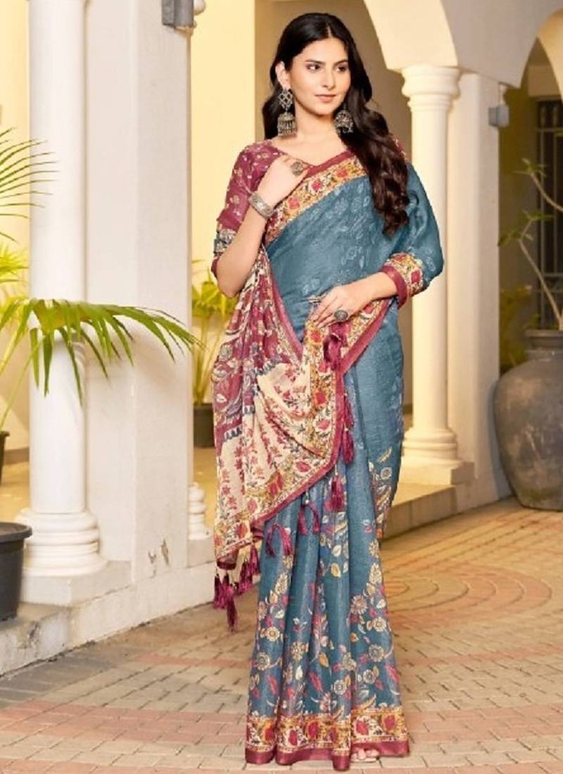 | Product Description | Elegant Teal Blue Base Beautifully Contrasted With Rich Maroon Borders And Multicolour Floral Accents, Enhanced With Mustard & Earthy Tones For A Classic Heritage Look.Soft Premium Handloom Fabric Offering Breathable Comfort And A Graceful Natural Fall.All Over Traditional Floral And Folk Inspired Motifs With Fine Detailing, Giving A Timeless Ethnic Appeal.Wide Maroon Ethnic Border With Intricate Floral Patterns And A Statement Heritage Pallu Finished With Decorative Maroon Tassels |