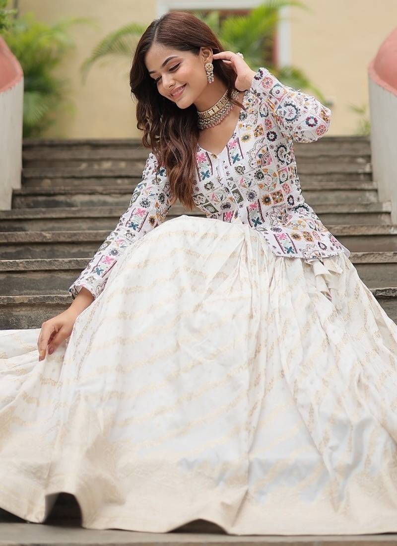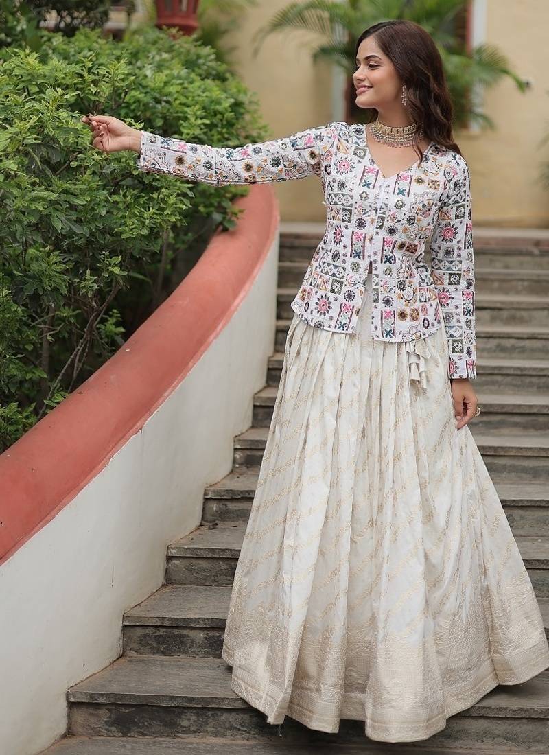 White color viscose jacquard lehenga top