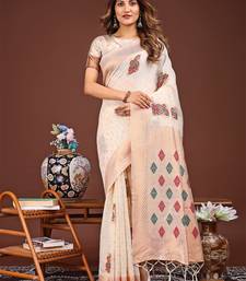 White color woven work linen cotton saree