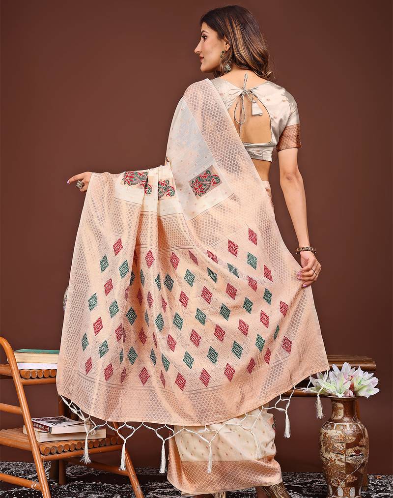 | Product Name | White Color Woven Work Linen Cotton Saree | |