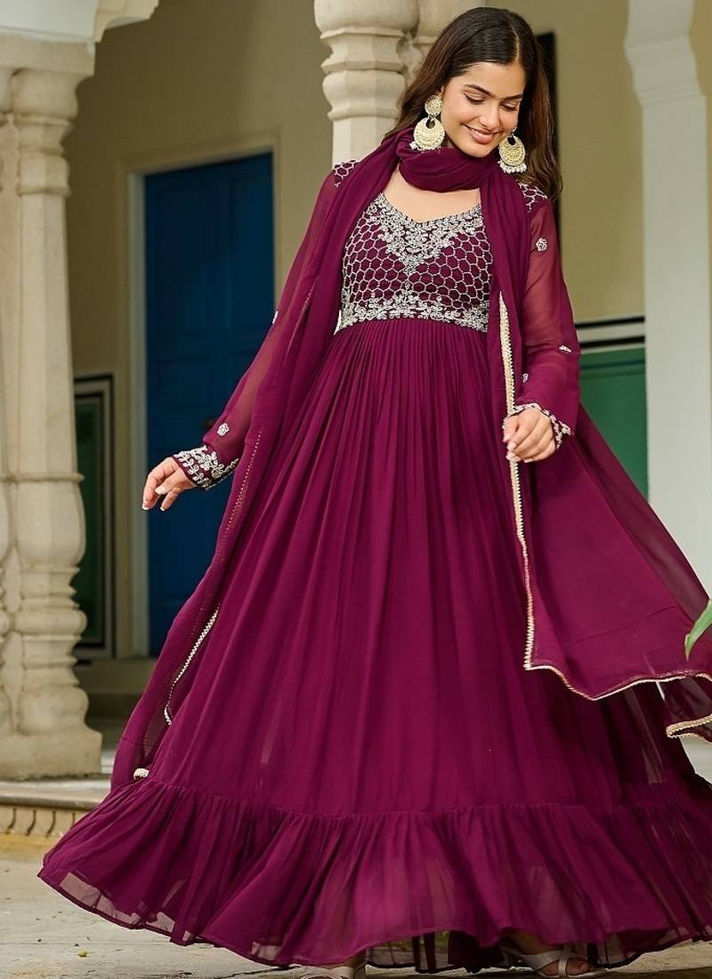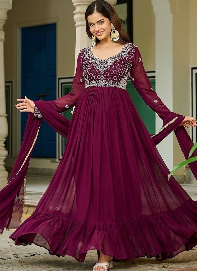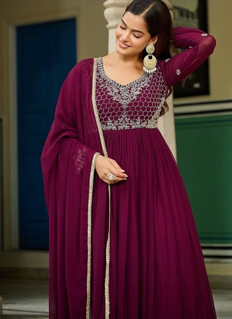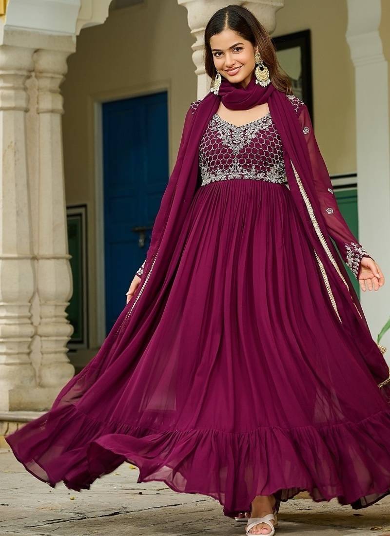 | Product Name | Wine Color Beads Embroidered Work Georgette Gown Dupatta | |