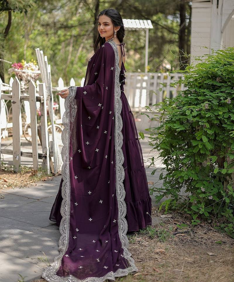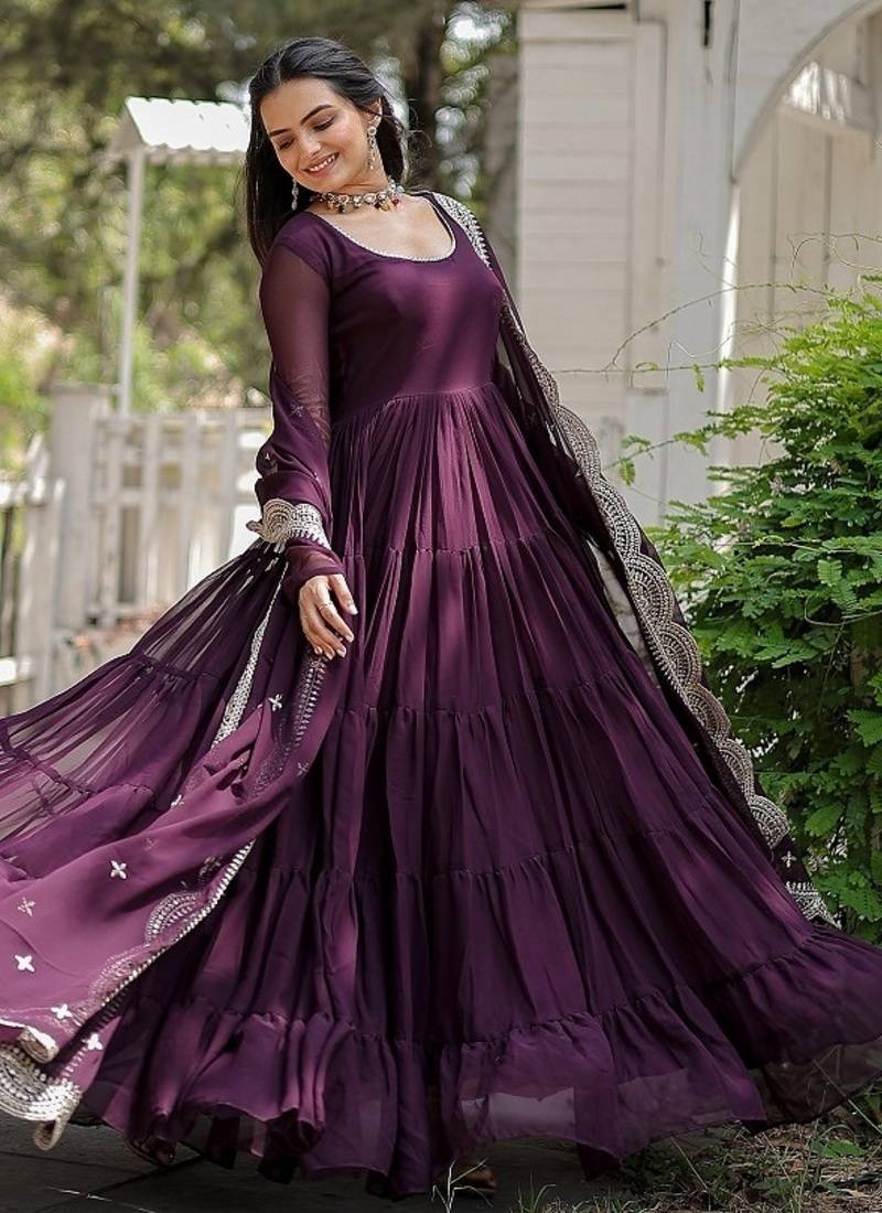| Product Name | Wine Color Embroidered Georgette Gown With Dupatta | |