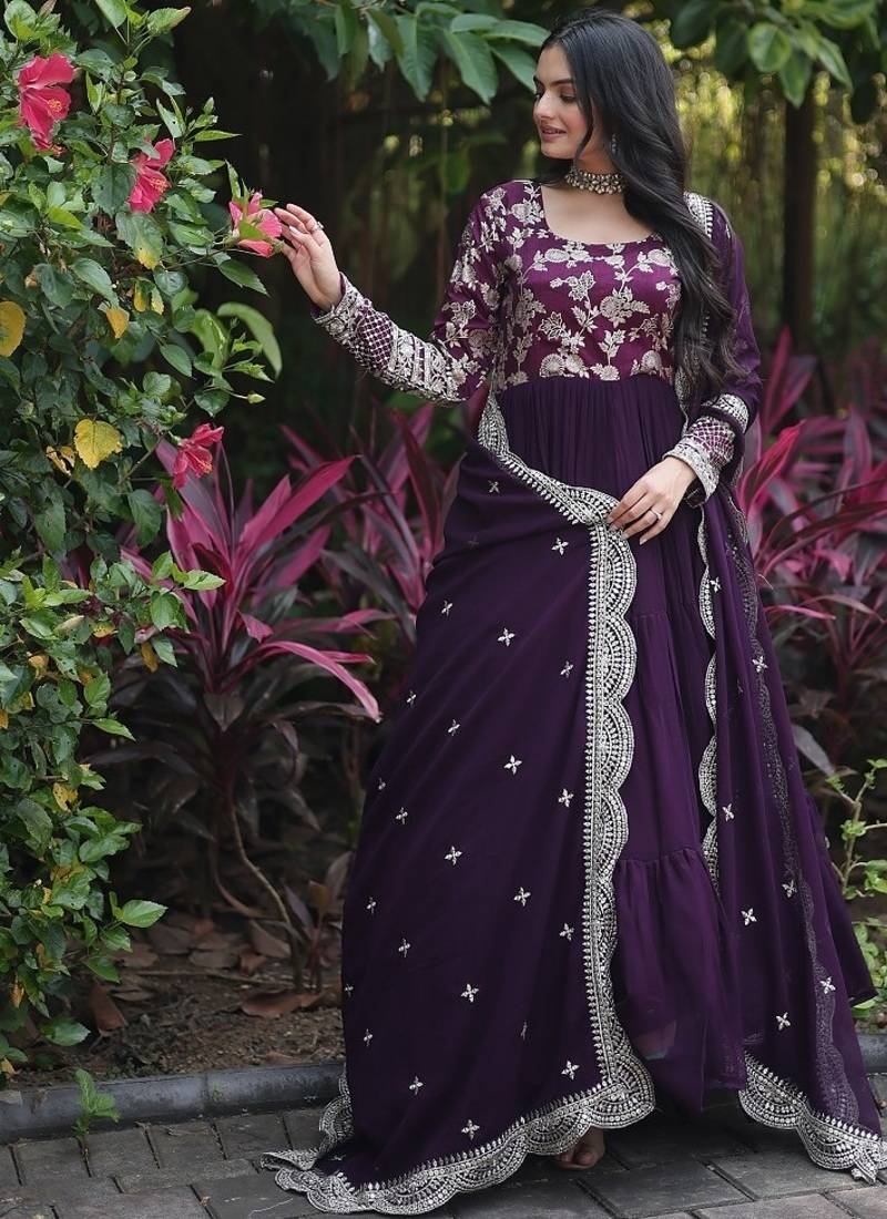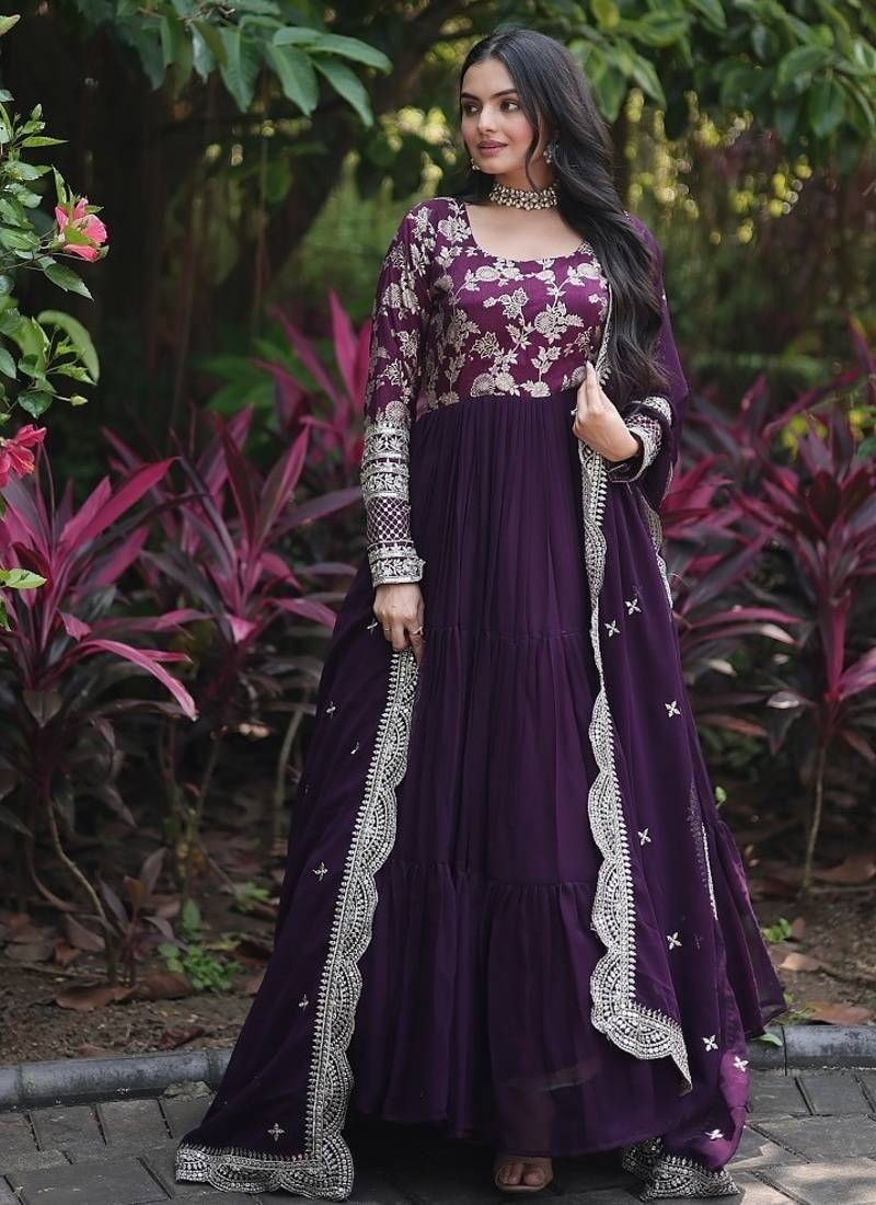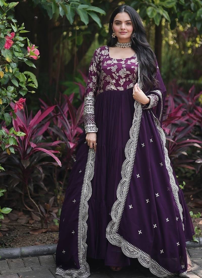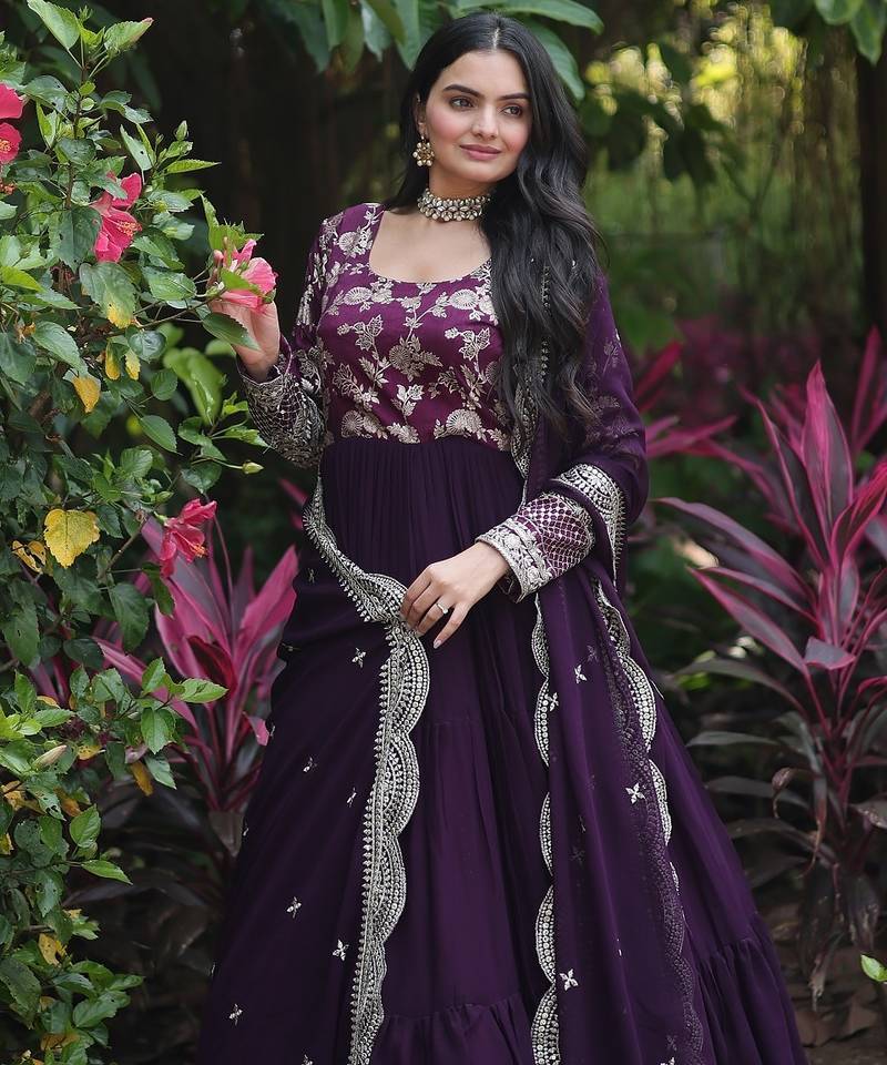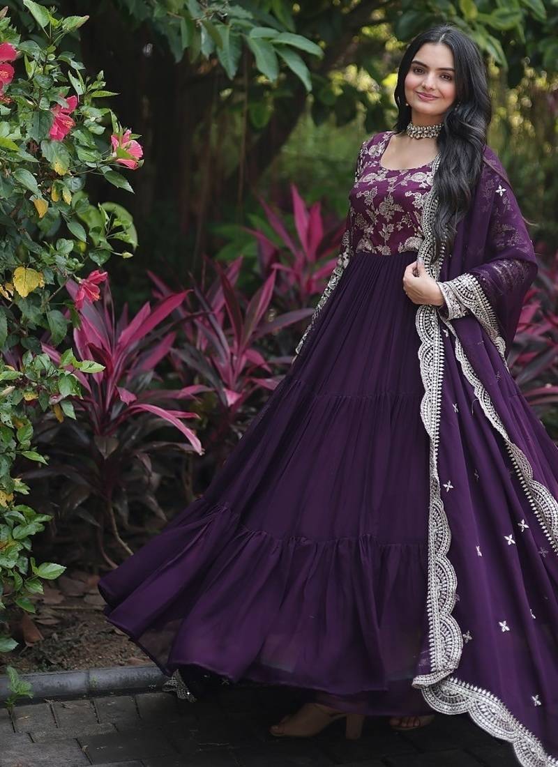 | Product Name | Wine Color Jacquard Sequins Work Georgette Gown With Dupatta | |