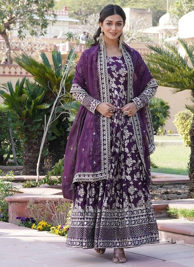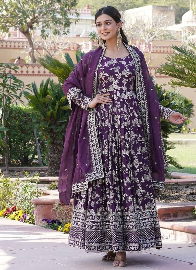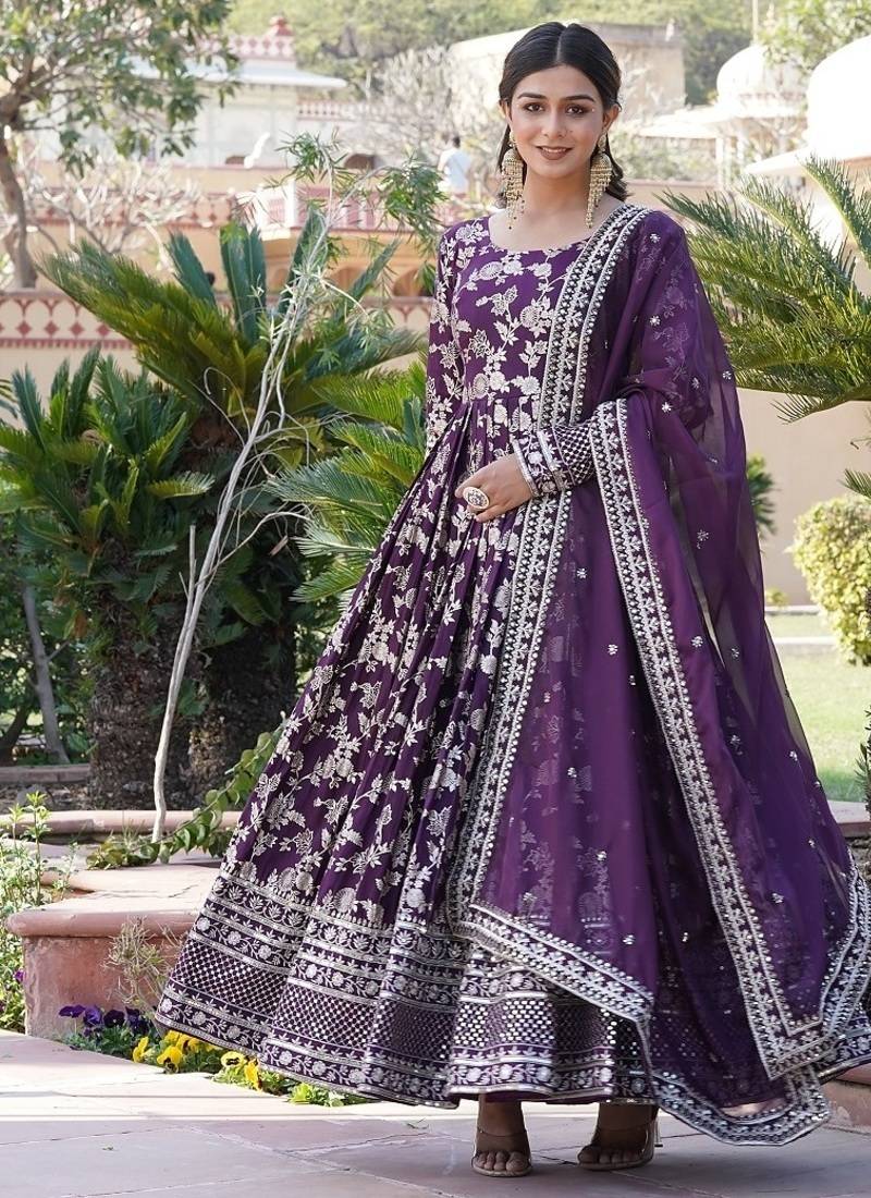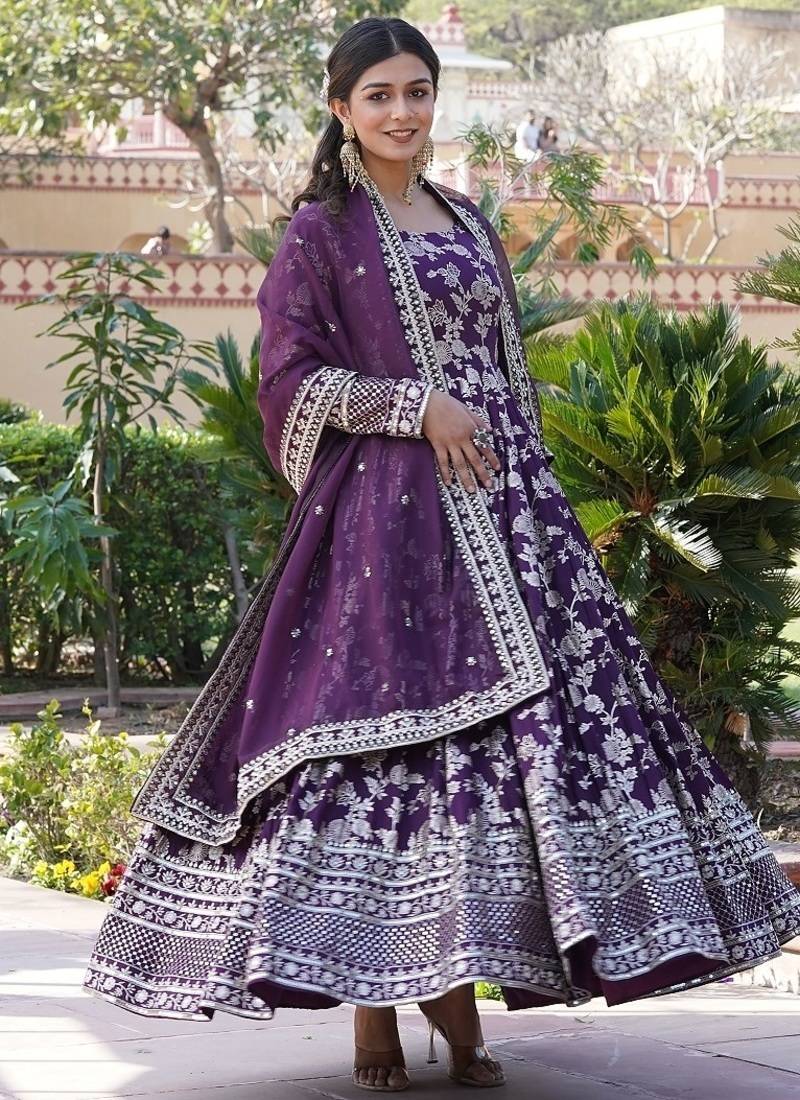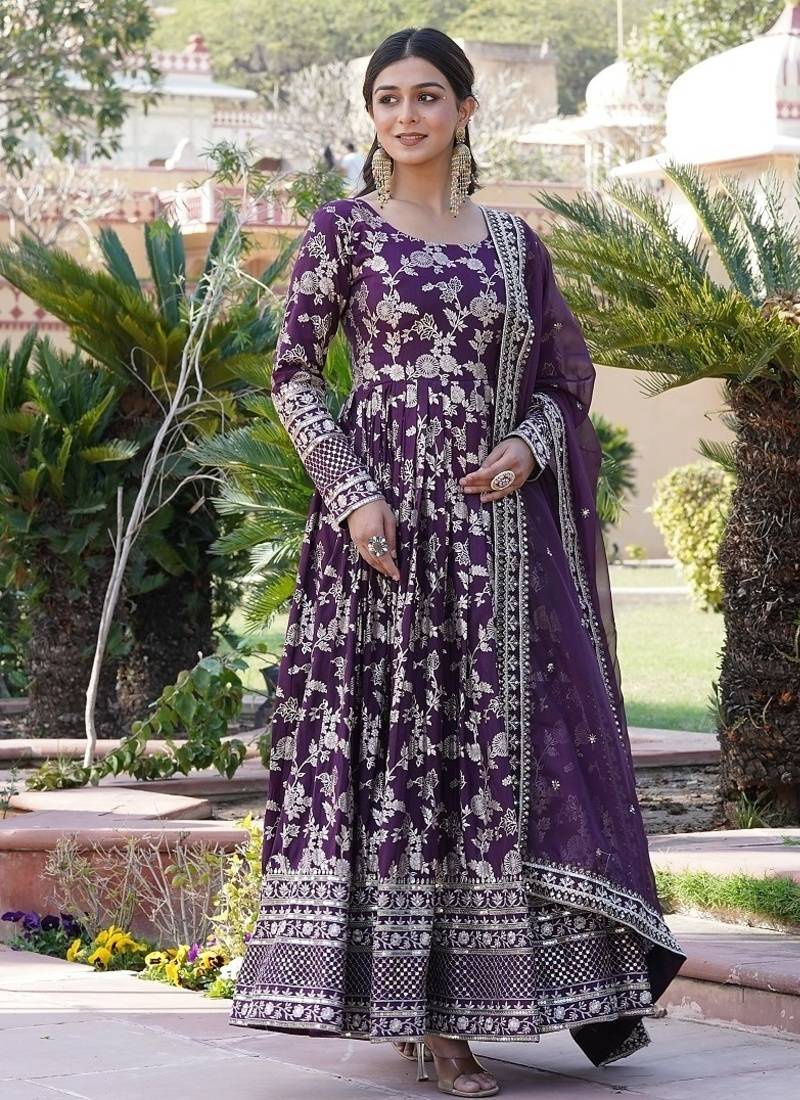 | Product Name | Wine Color Viscose Diable Jacquard Sequins Embroidered Work Gown With Dupatta | |