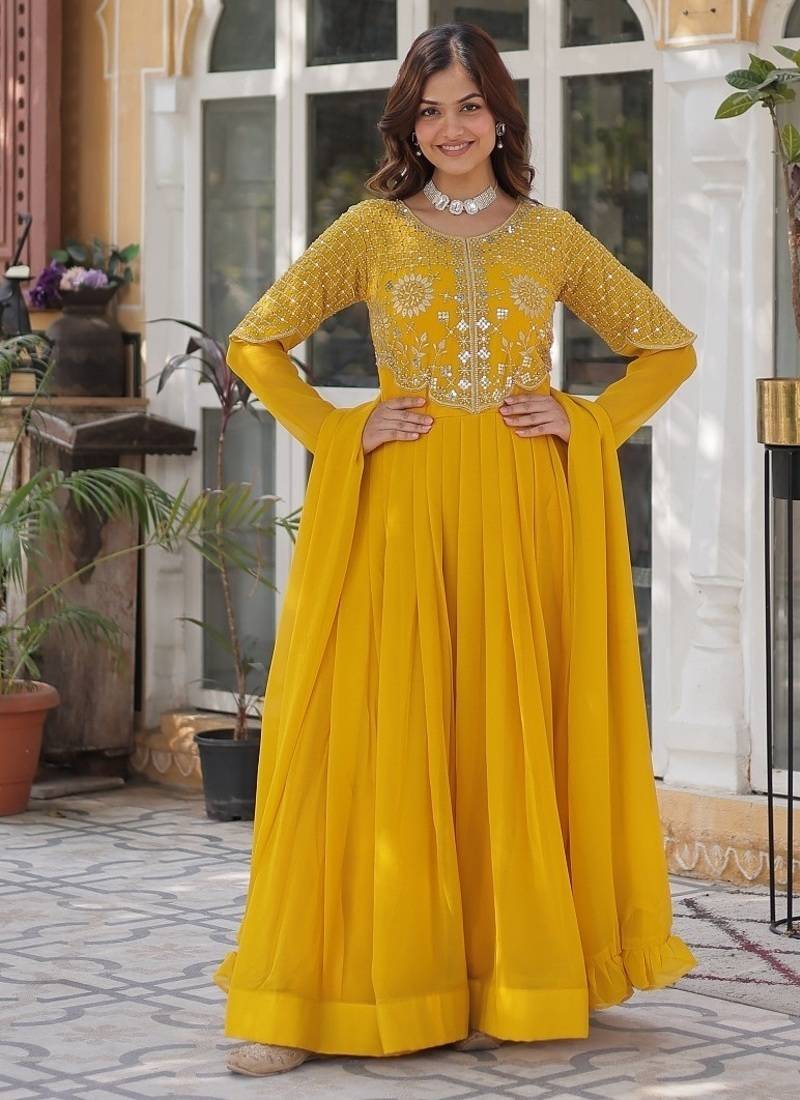 | Product Name | Yellow Color Embroidered Work Georgette Gown With Dupatta | |