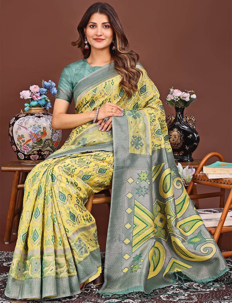 | Product Name | Yellow Color Woven Linen Cotton Saree | |