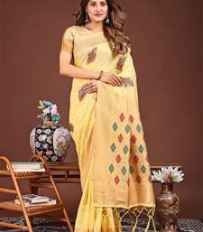 Yellow color woven work linen cotton saree