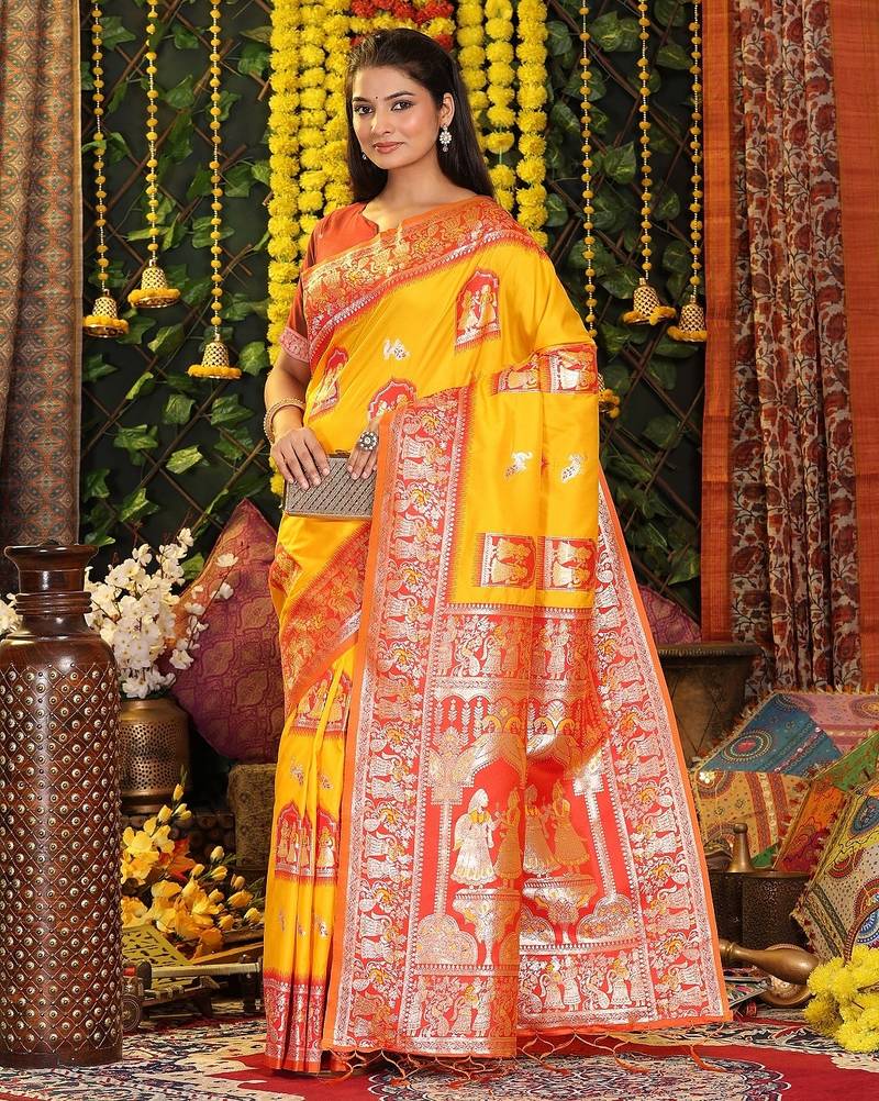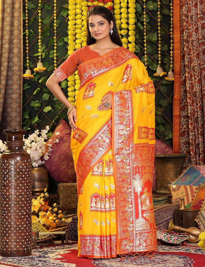 | Product Name | Yellow Color Woven Work Art Silk Wedding Wear Saree | |