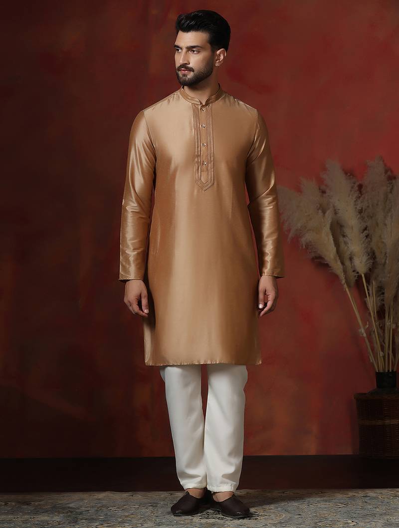 | Product Name | Brown Dupion Kurta Pyjama Set For Men With Solid Design | |