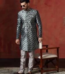 | Product Name | Green Jacquard Blend Indo Western And Pyjama Set For Men With Printed Design | |