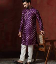 | Product Description | Purple Jacquard Blend Kurta Pajama Set For Men With Printed Design |