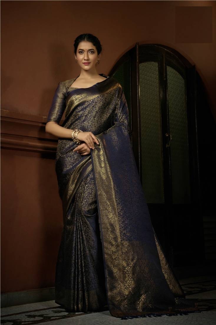 Blue bridal faux kanchipuram wedding woven silk blend sarees