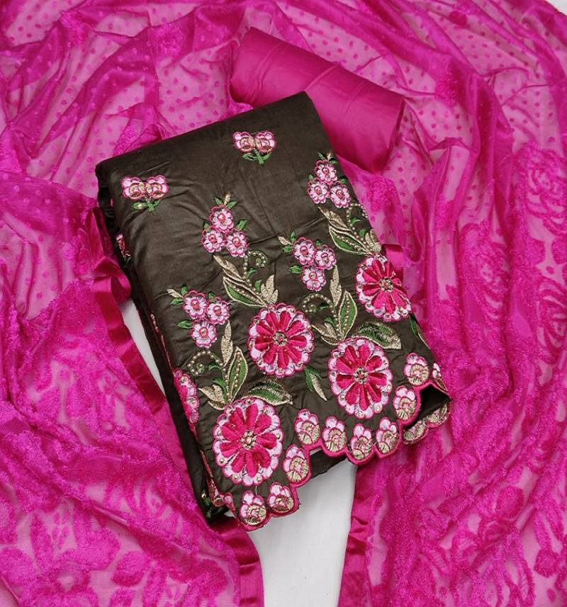 Heavy cotton with embroidery + diamond work salwar kameez unstitched