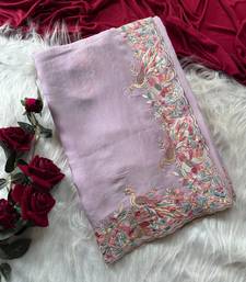 Lavender color embroidery with beautiful peacock & floral motifs work moss chiffon saree