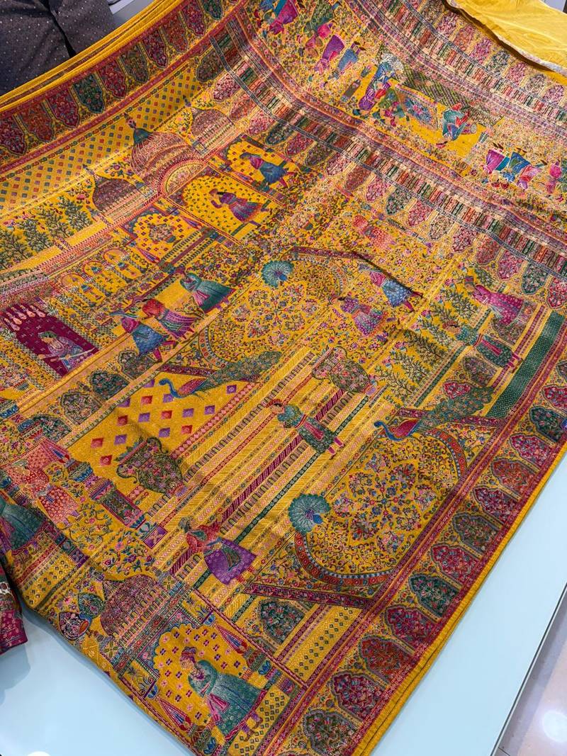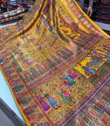 Mustard color zari weaving work viscos silk saree