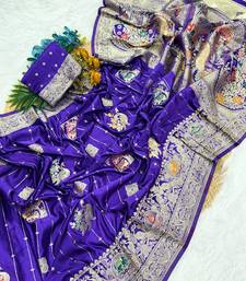 Purple color hand dyed satin silk traditional saree