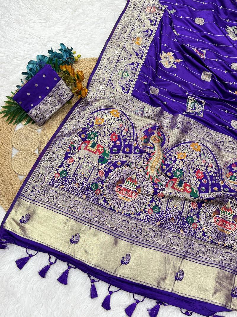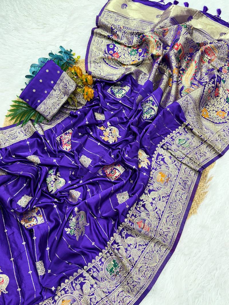 ❤️ Gorgeous Hand Dyed Satin Silk Saree Featuring Rich Banarasi Zari Weaving, Soft Lachko Luster, And Finished With Elegant Heavy Tassels On The Pallu. A Perfect Blend Of Tradition And Modern Elegance. |