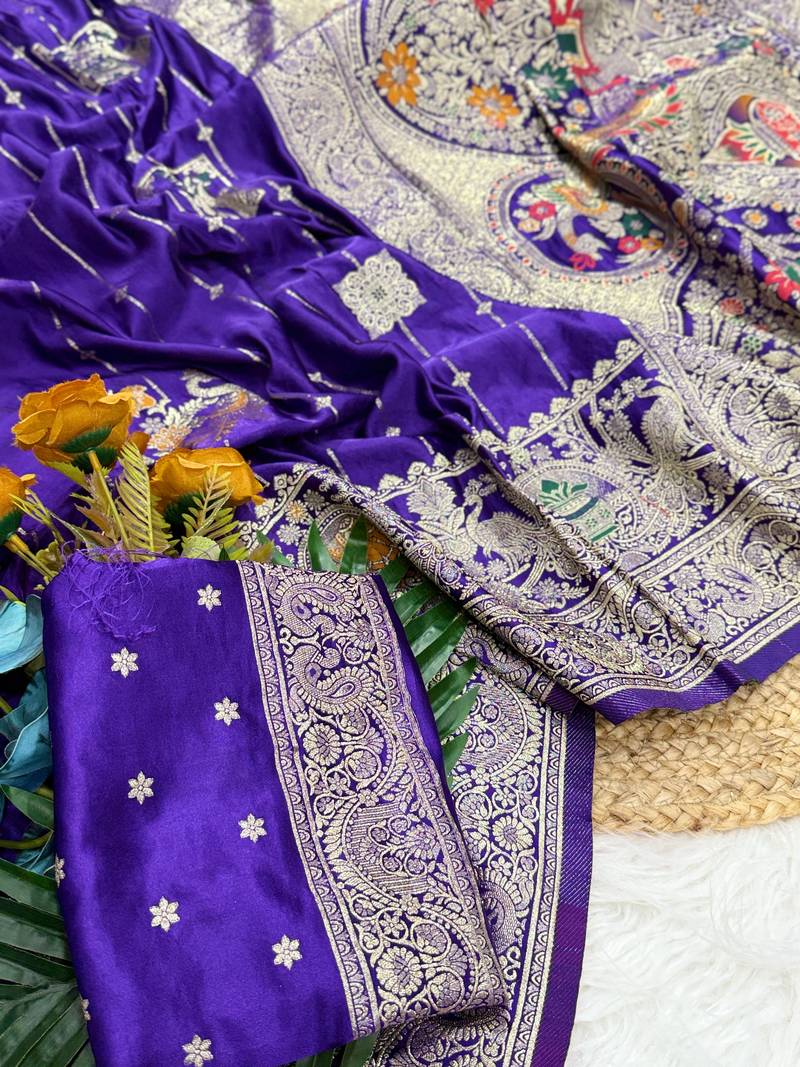 Product Name | Purple Color Hand Dyed Satin Silk Traditional Saree | |