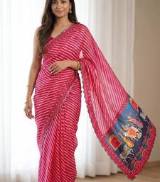 Product Name Red Color Aaari Mirror Foil Work And Gopi Kana Print Silk Saree