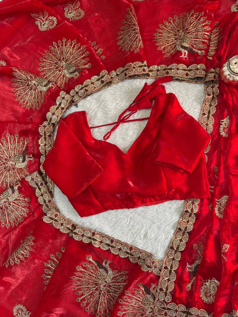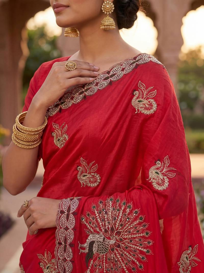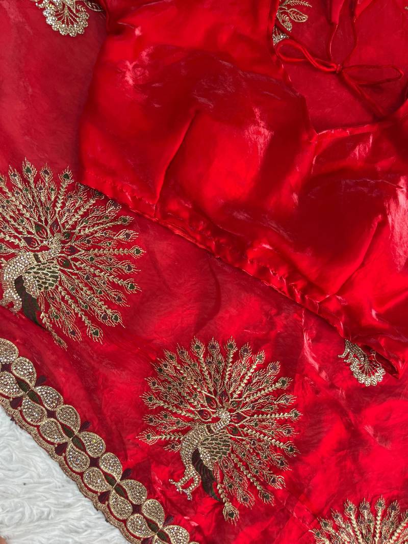 | Product Name | Red Color Multi Embroidery & Siroski Hand Work Satin Saree | |