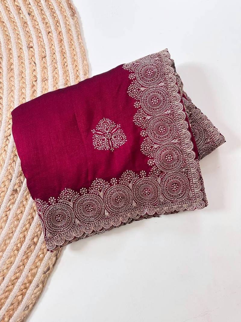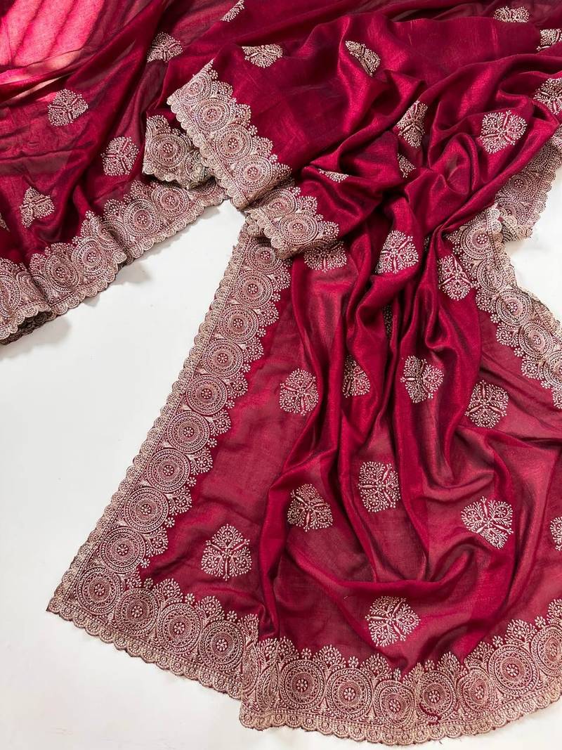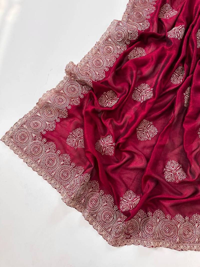 | Product Name | Rose Color Blooming Vichitra Embroidered Saree | |