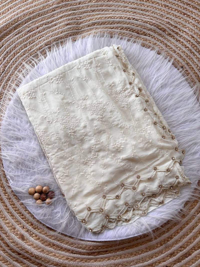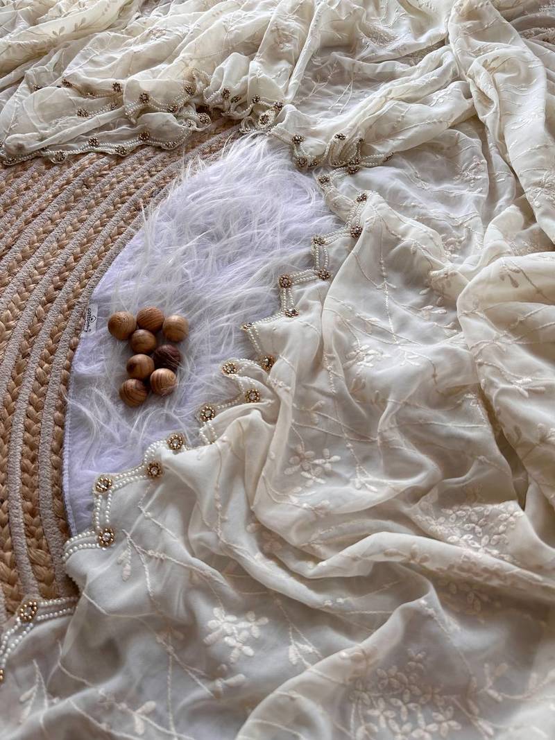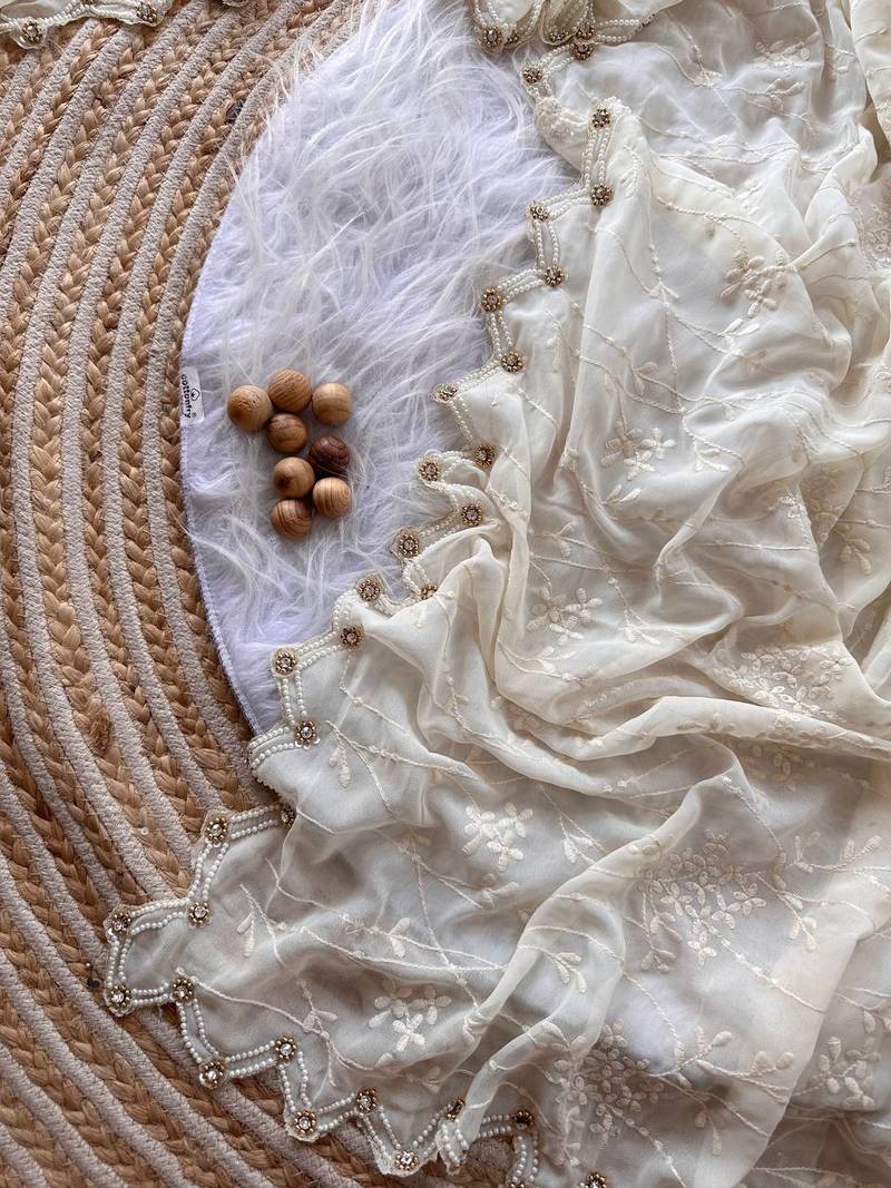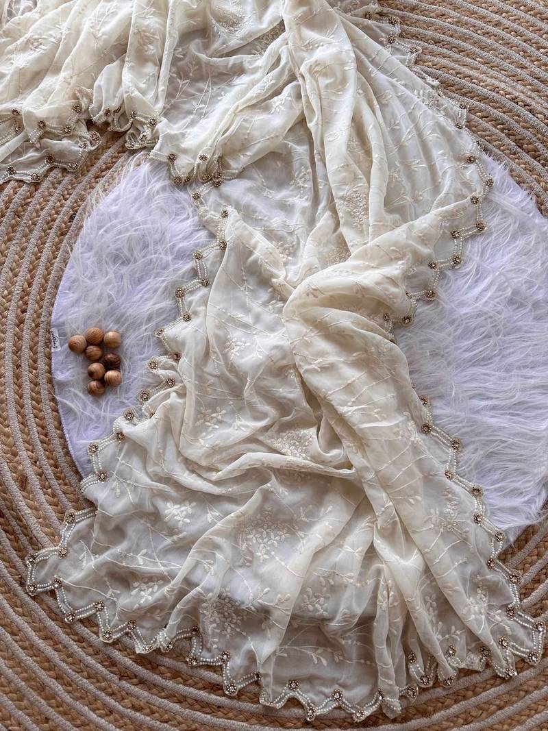 | Product Name | White Color Viscos Thread Work Border Georgette Silk Saree | |