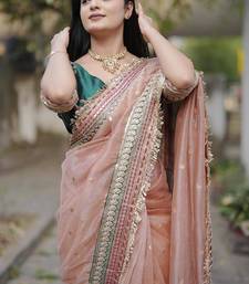 Beige color embroidered banarasi crush saree