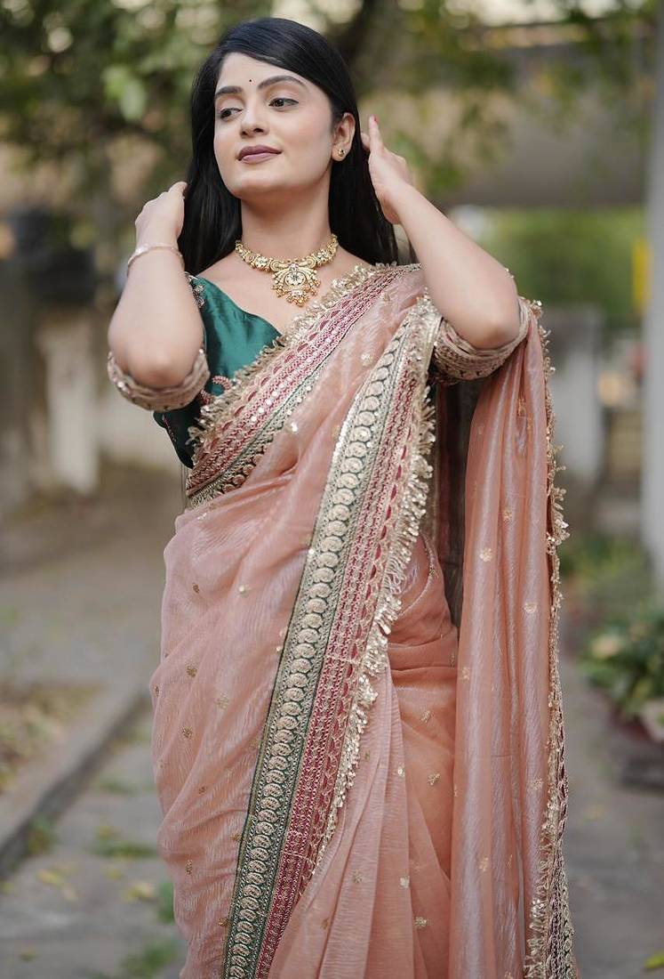 | Product Name | Beige Color Embroidered Banarasi Crush Saree | |