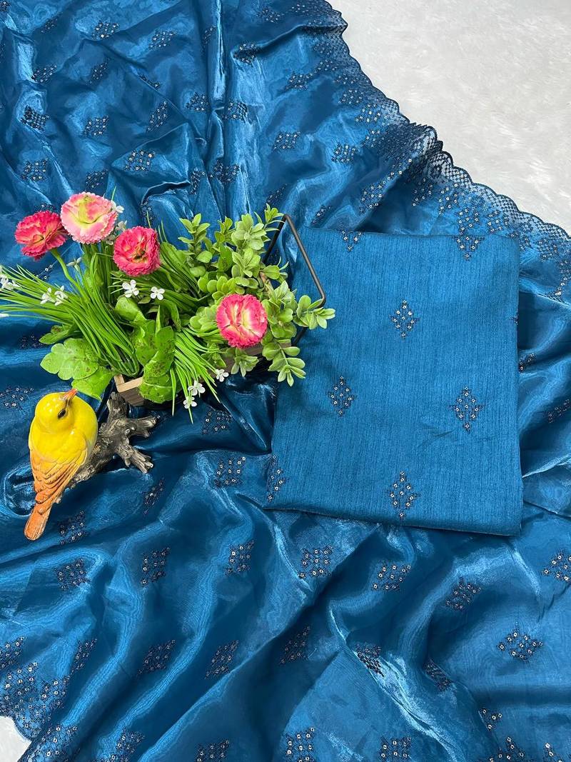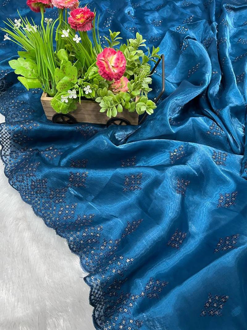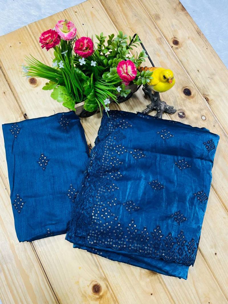 | Product Name | Blue Silk Saree With Sequins Embroidery Work | |