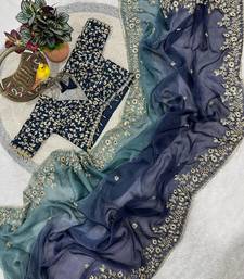 Blue color sequins with jari thread embroidery work chiffon silk saree