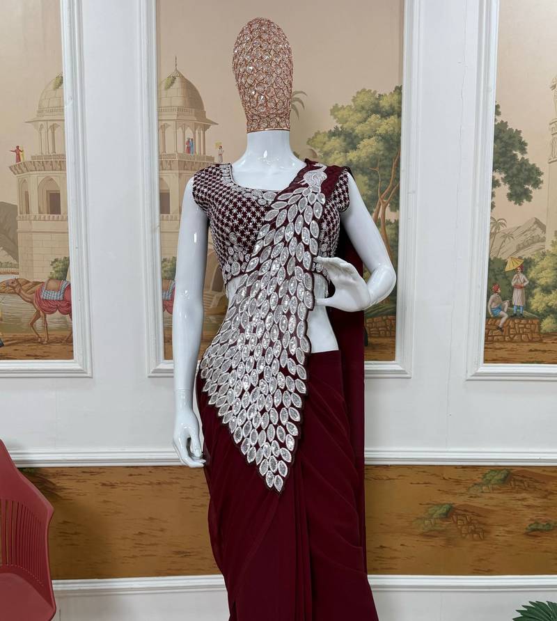 | Product Name | Brown Color Embroidered,Thread & Sequins Work Work Faux Georgette Ready To Wear Saree | |