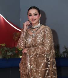 | • | Saree | : | Color- Chiku / Fabric- Net |