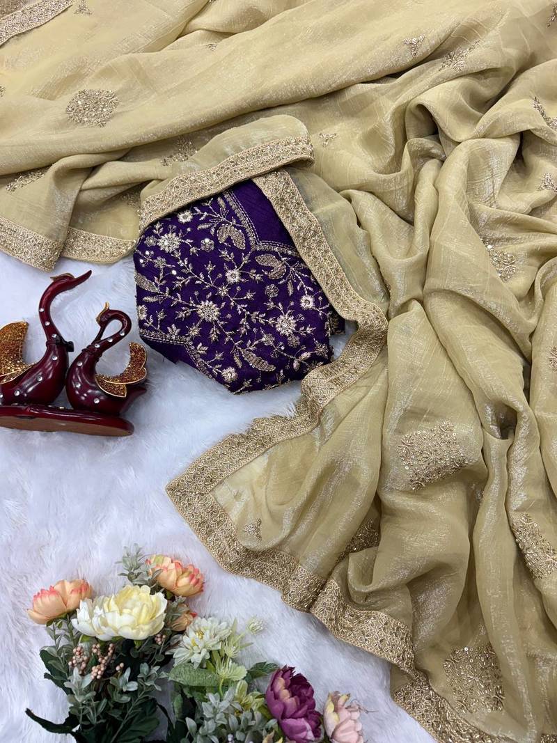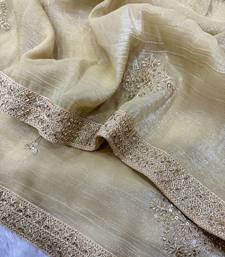 Cream color bead sequins and dori embroidery work crunchy silk blend saree