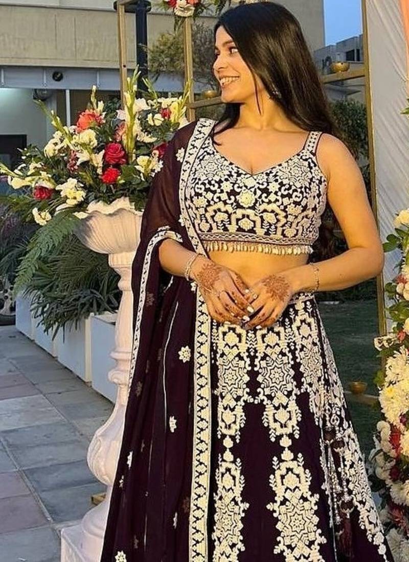 Dark purple color thread & sequins work all over kasturi silk lehenga blouse