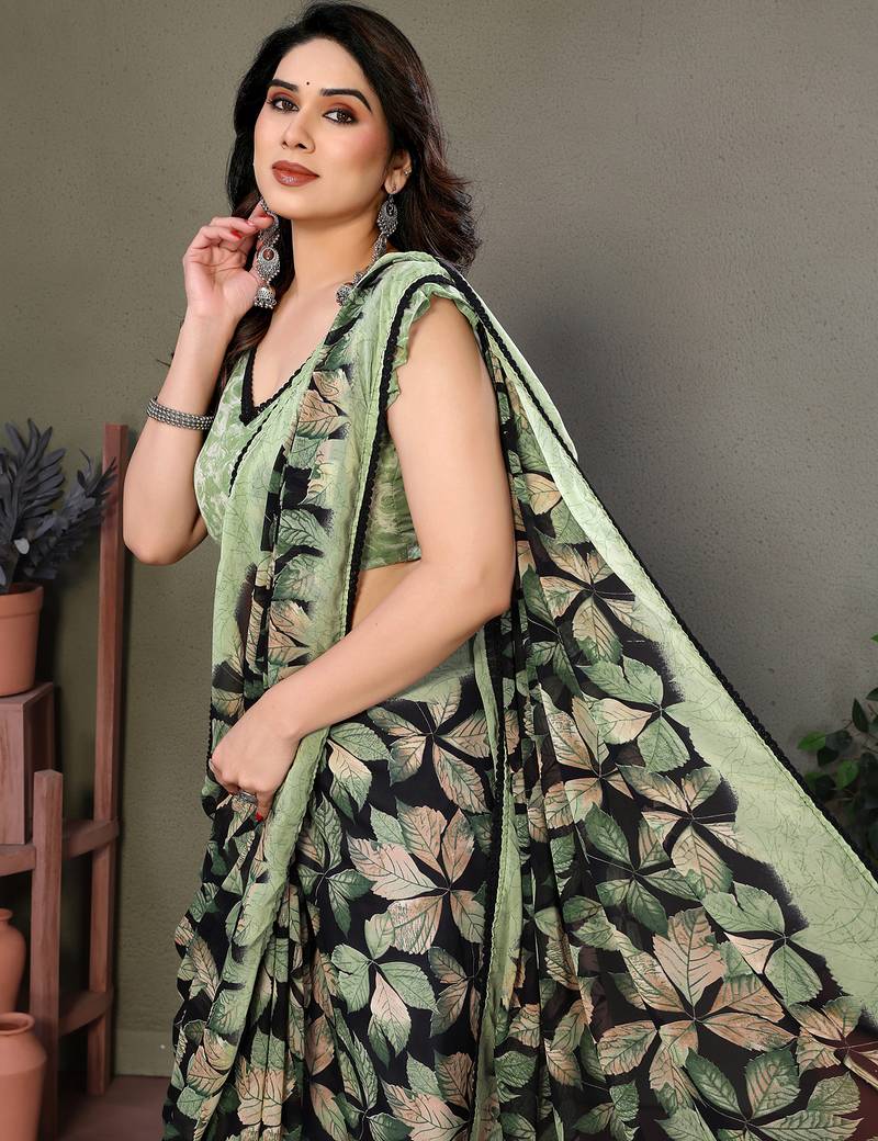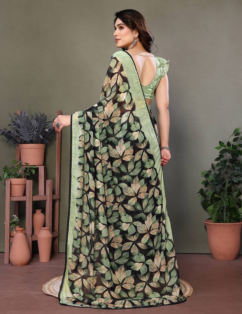 | Product Name | Green Color Digital Printed Chiffon Saree | |