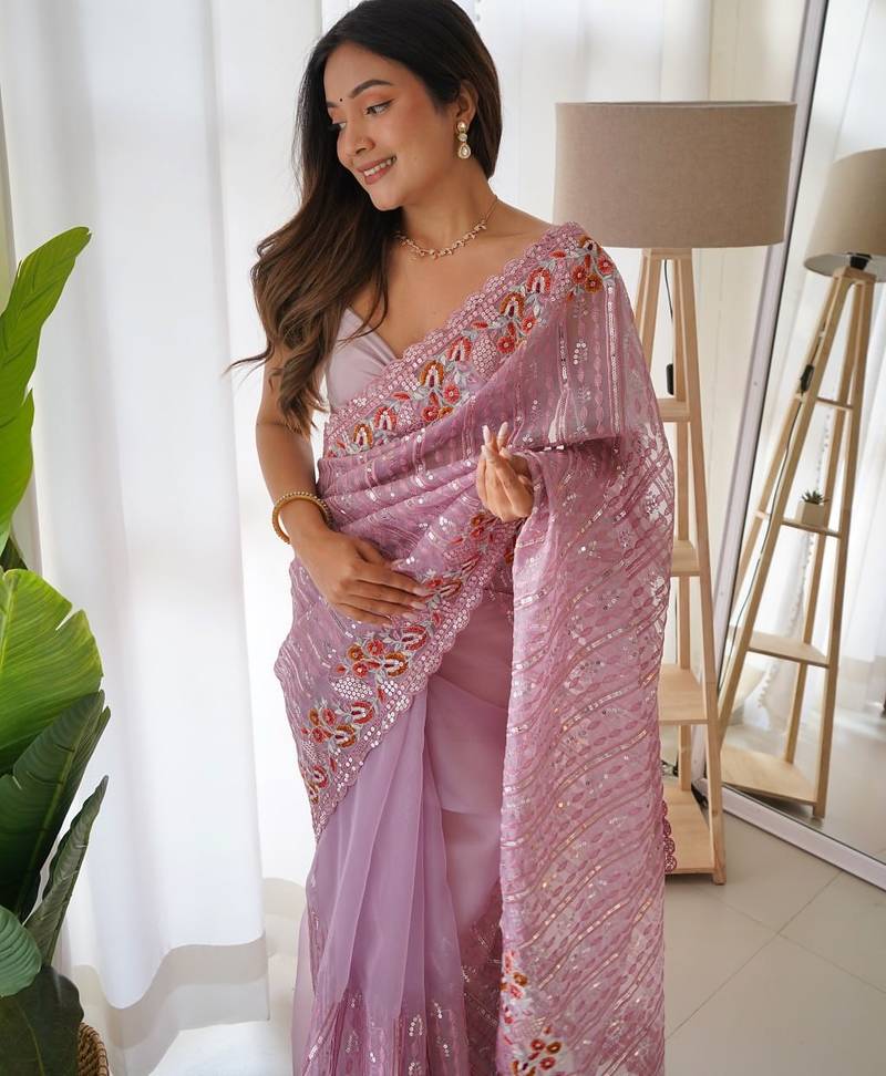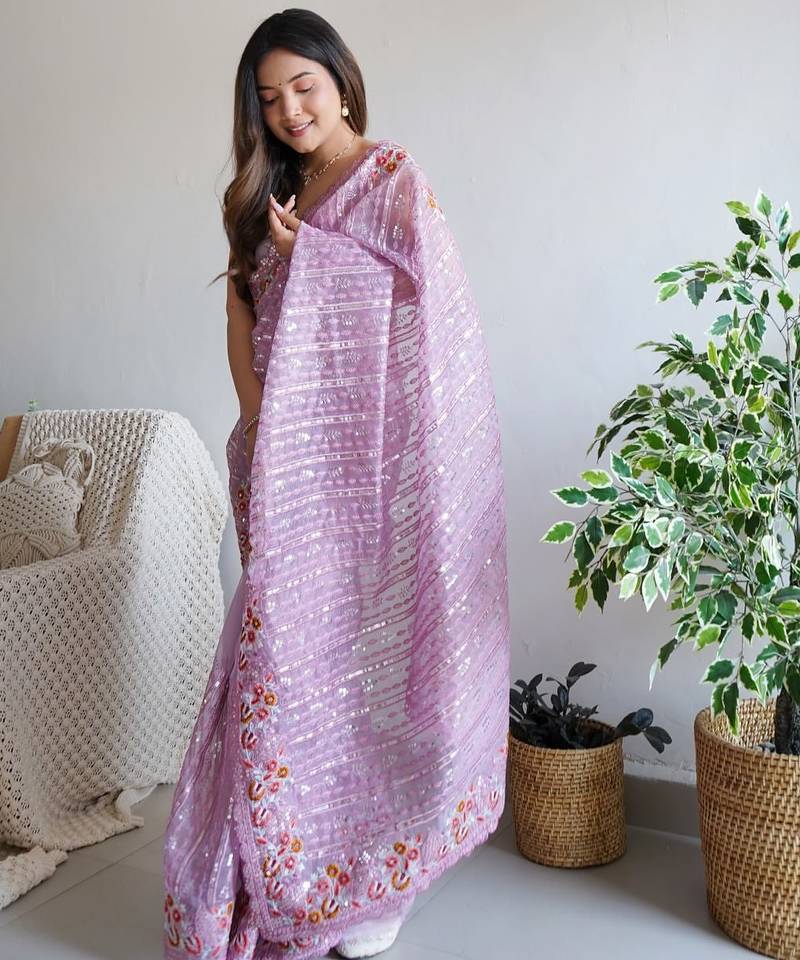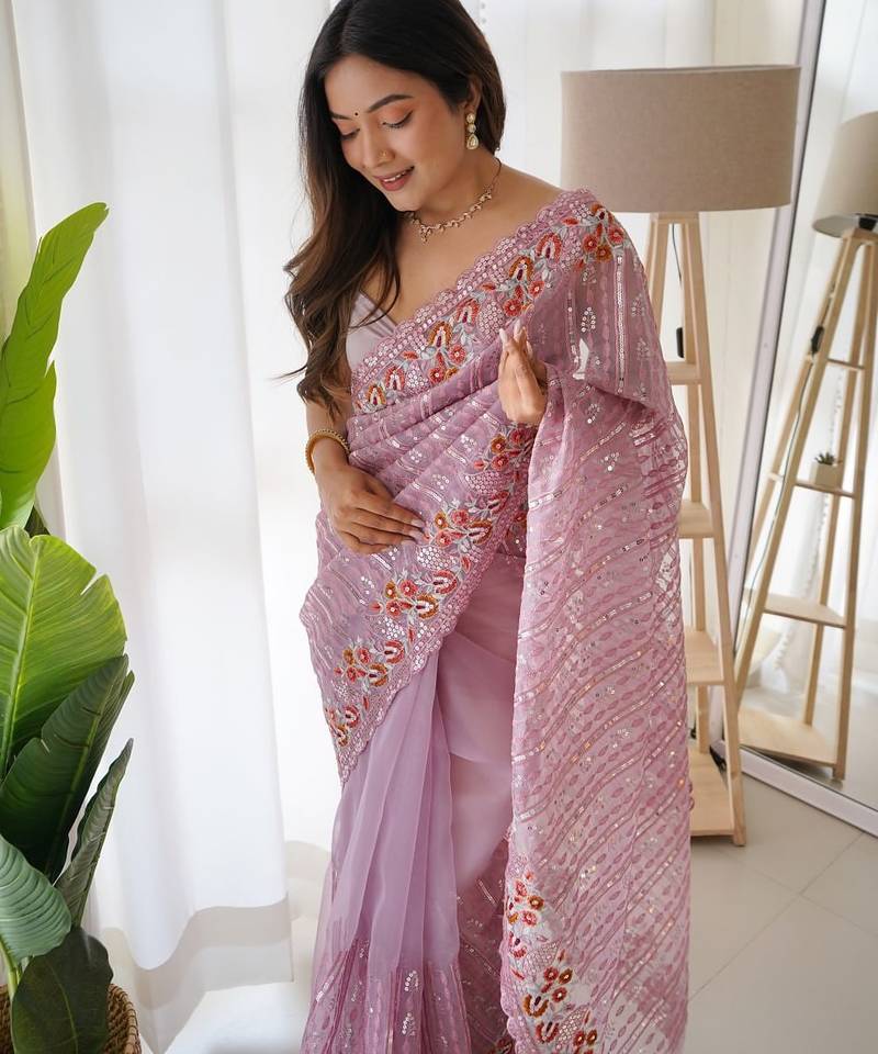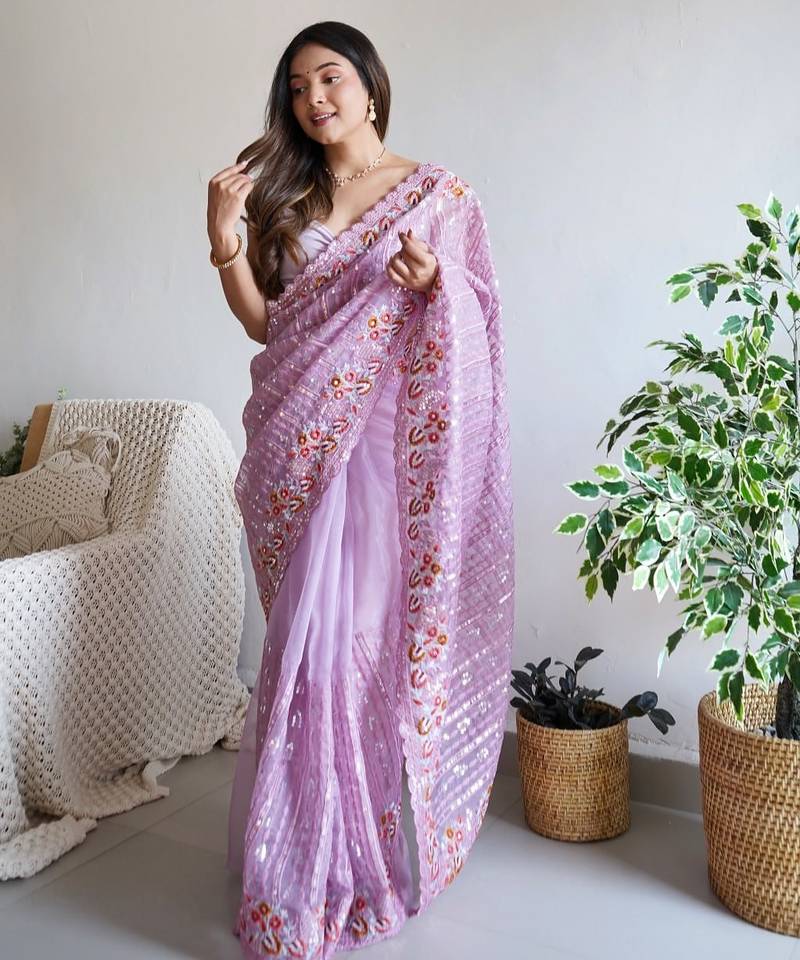 | Product Name | Lavender Color Embroidered Organza Silk Saree | |
