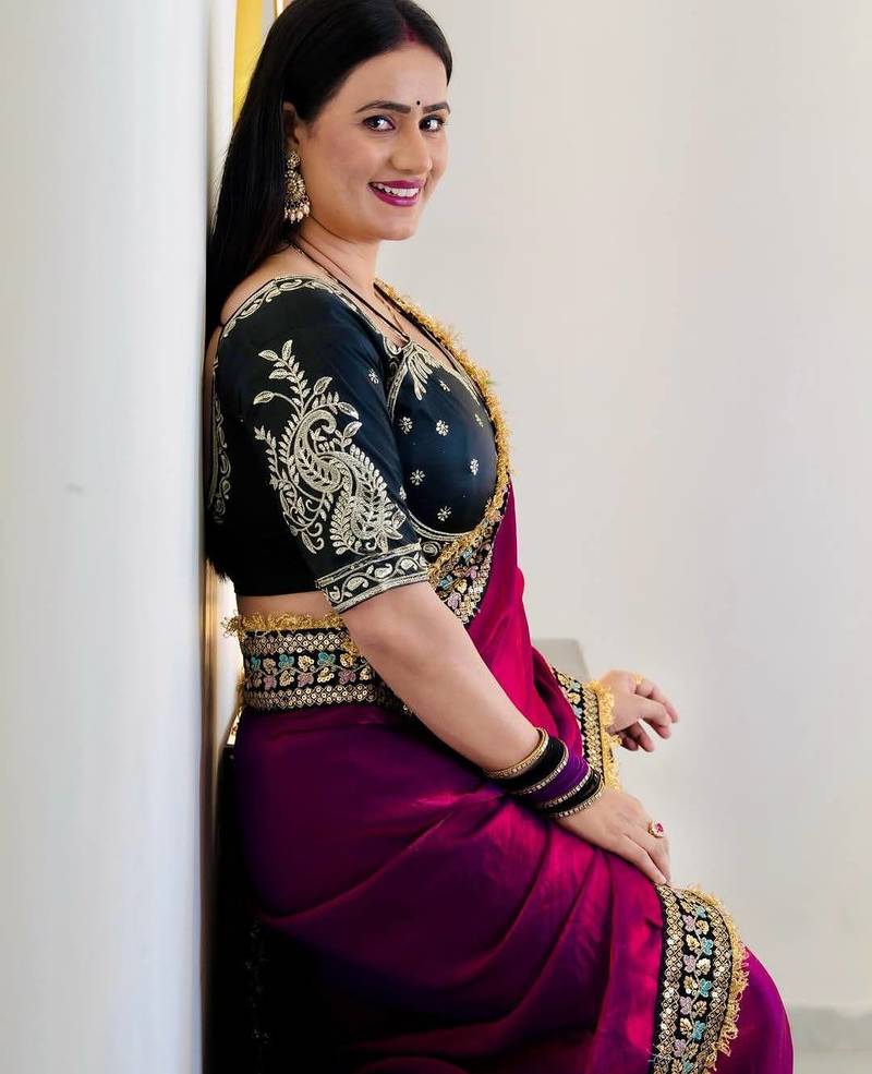 | • | Saree | : | Color- Magenta / Fabric- Satin |