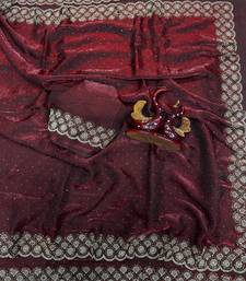 Maroon color diamond work space silk saree