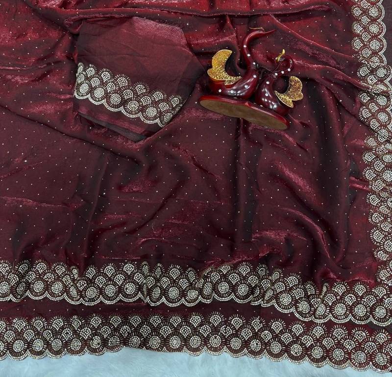 | Product Name | Maroon Color Diamond Work Space Silk Saree | |