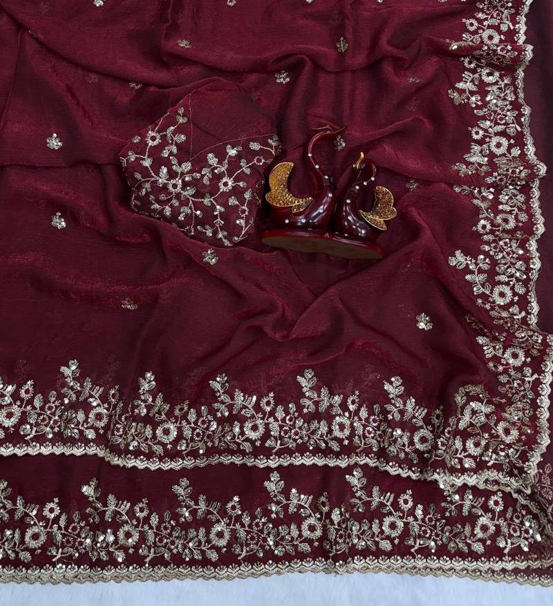 | Product Name | Maroon Color Embroidered Chiffon Saree | |