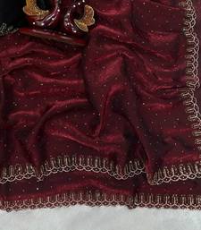 Maroon color jarkhan diamond work space silk blend saree