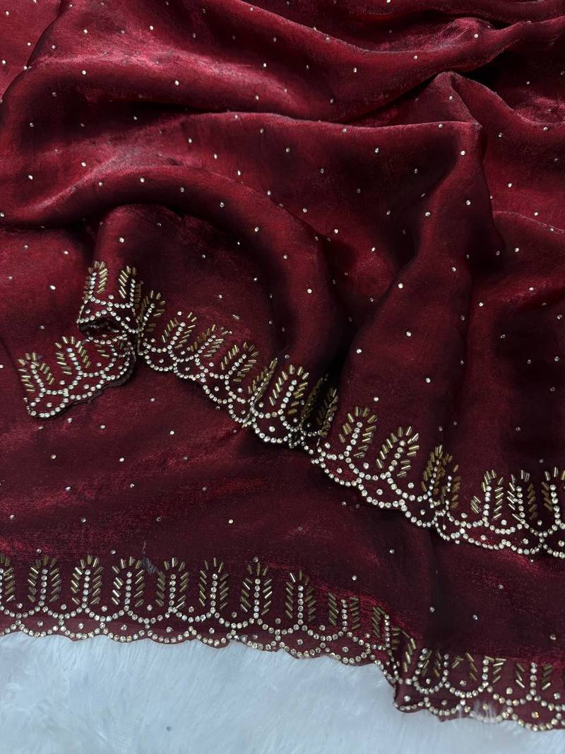 | Product Name | Maroon Color Jarkhan Diamond Work Space Silk Blend Saree | |