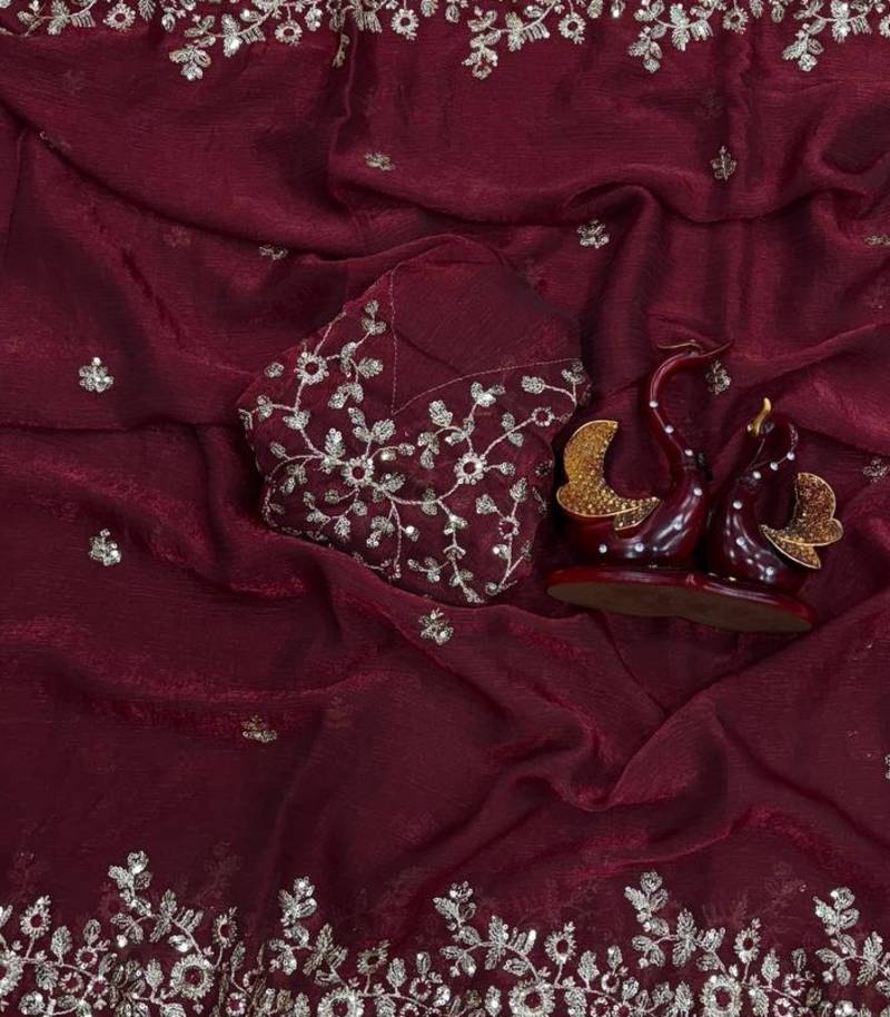 | Product Name | Maroon Color Sequence Embroidery Work Frendy Chiffon Saree | |