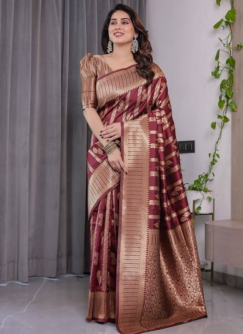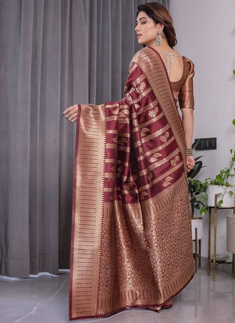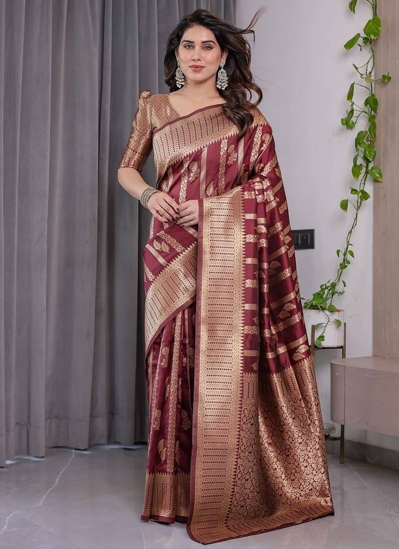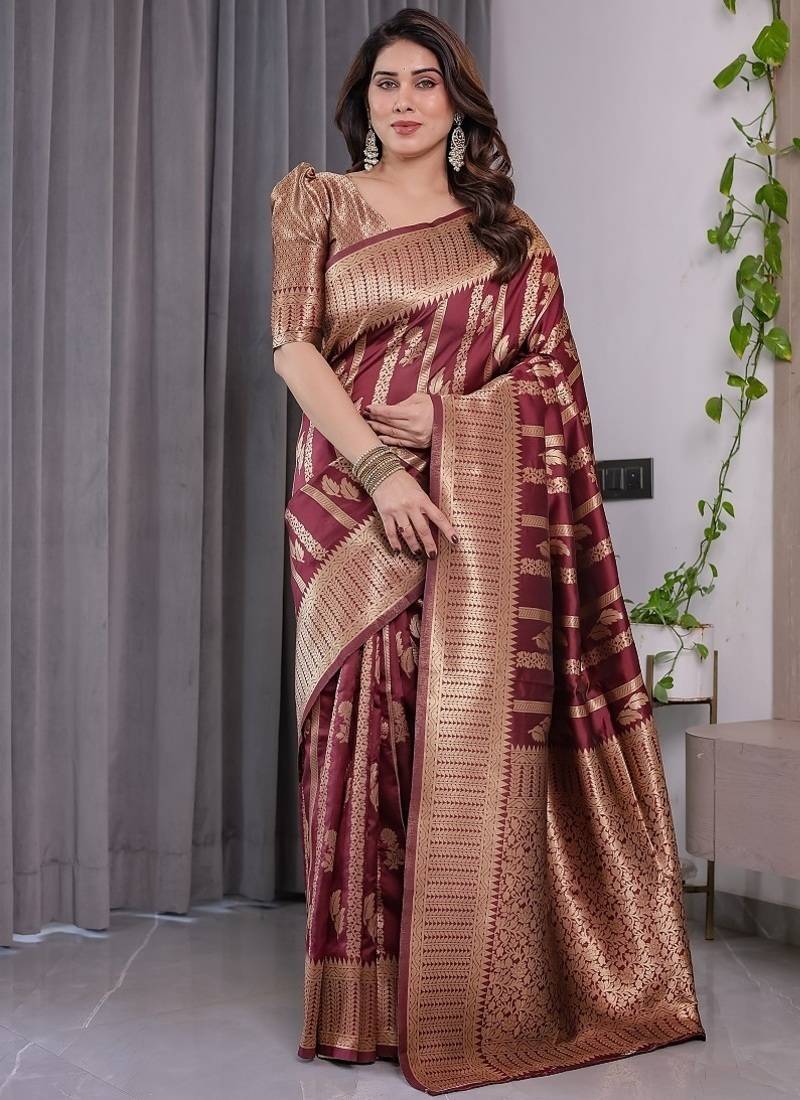 Maroon color zari woven banarasi art silk saree