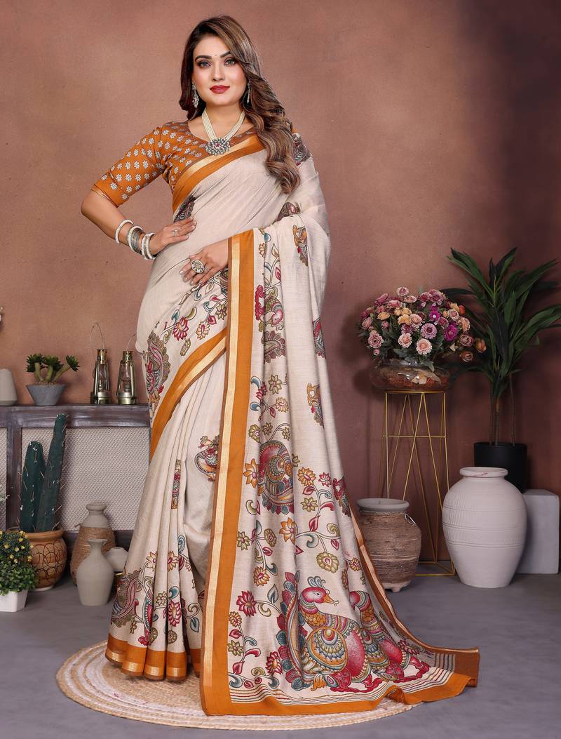 | Product Name | Mustard Color Kalamkari Print Cotton Saree | |