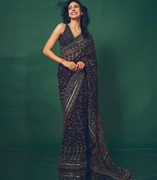 Navy blue color sequins and diamonds work georgette saree