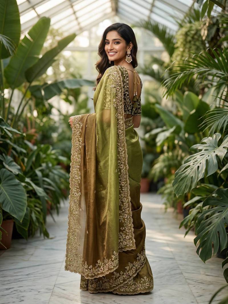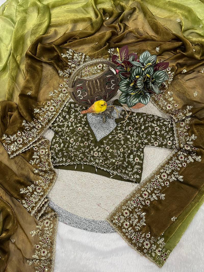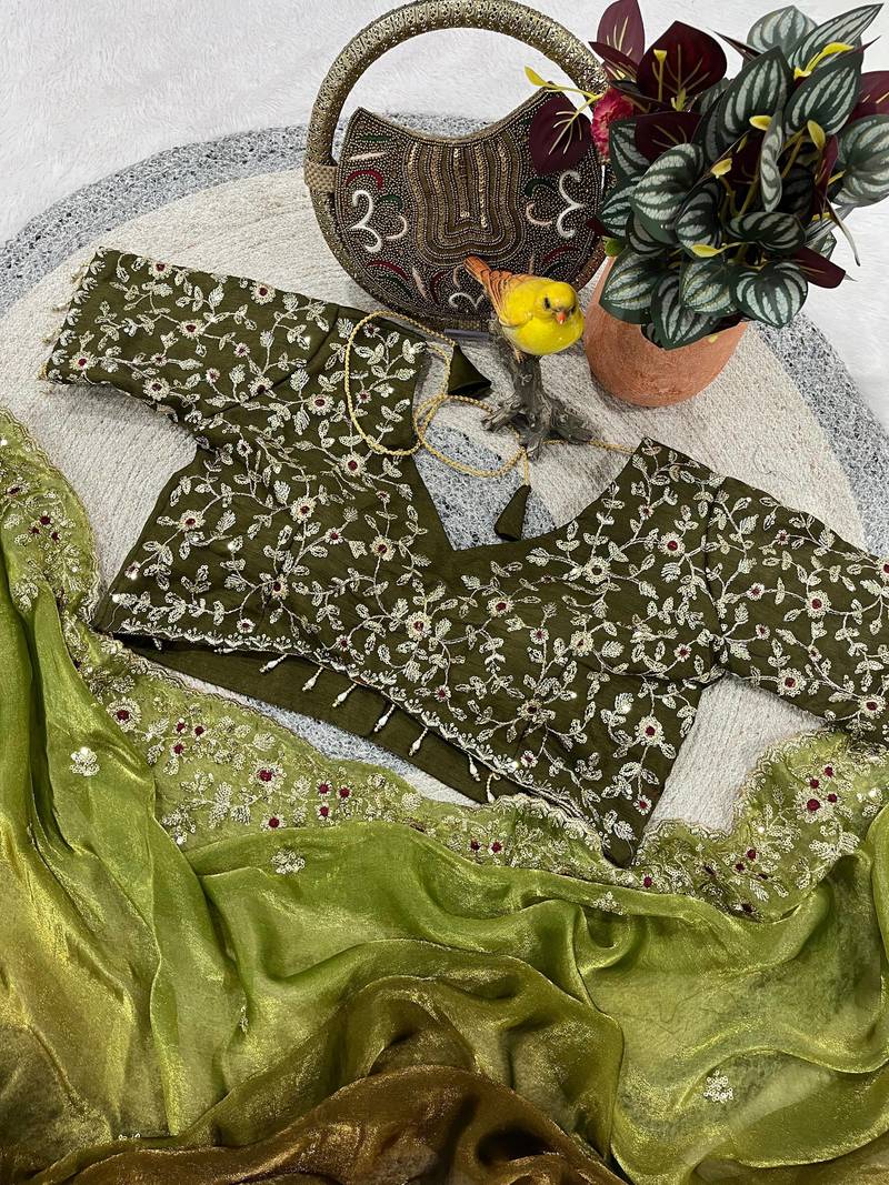| Product Name | Olive Color Sequins With Jari Thread Embroidery Work Chiffon Silk Saree | |
