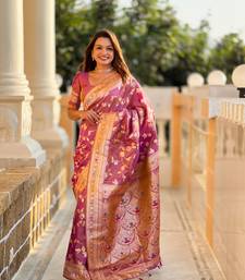 | • | Saree | : | Color- Onion Pink / Fabric- Faux Banarasi Silk |